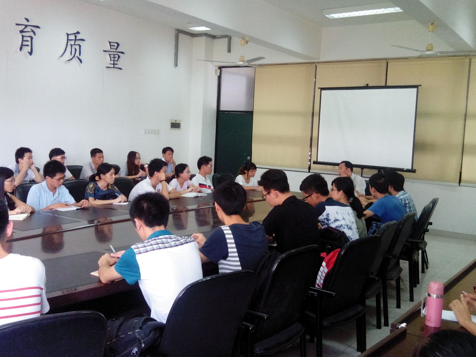 在工三220会议室召开2015届本科毕业生推免研究生工作会议,余林院长、英健文副书记、11级辅导员魏源、冯树清老师,以及近50名有意向推免的学生参加了本次会议。