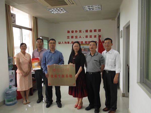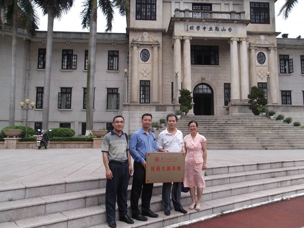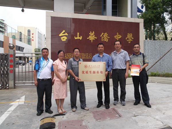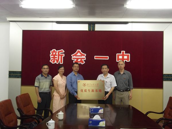 5月13日,动漫狂 派出由教学副院长杜志云、党委副书记英健文、制药党支部书记郑杰组成的三人宣传工作组再次奔赴江门地区继续开展招生宣传活动。工作组一行先后与鹤山市第一中学、鹤华中学、新会市第一中学、台山市第一中学、台山市华侨中学共5所中学签订了共建优质生源基地的协议并联合举行了挂牌仪式。