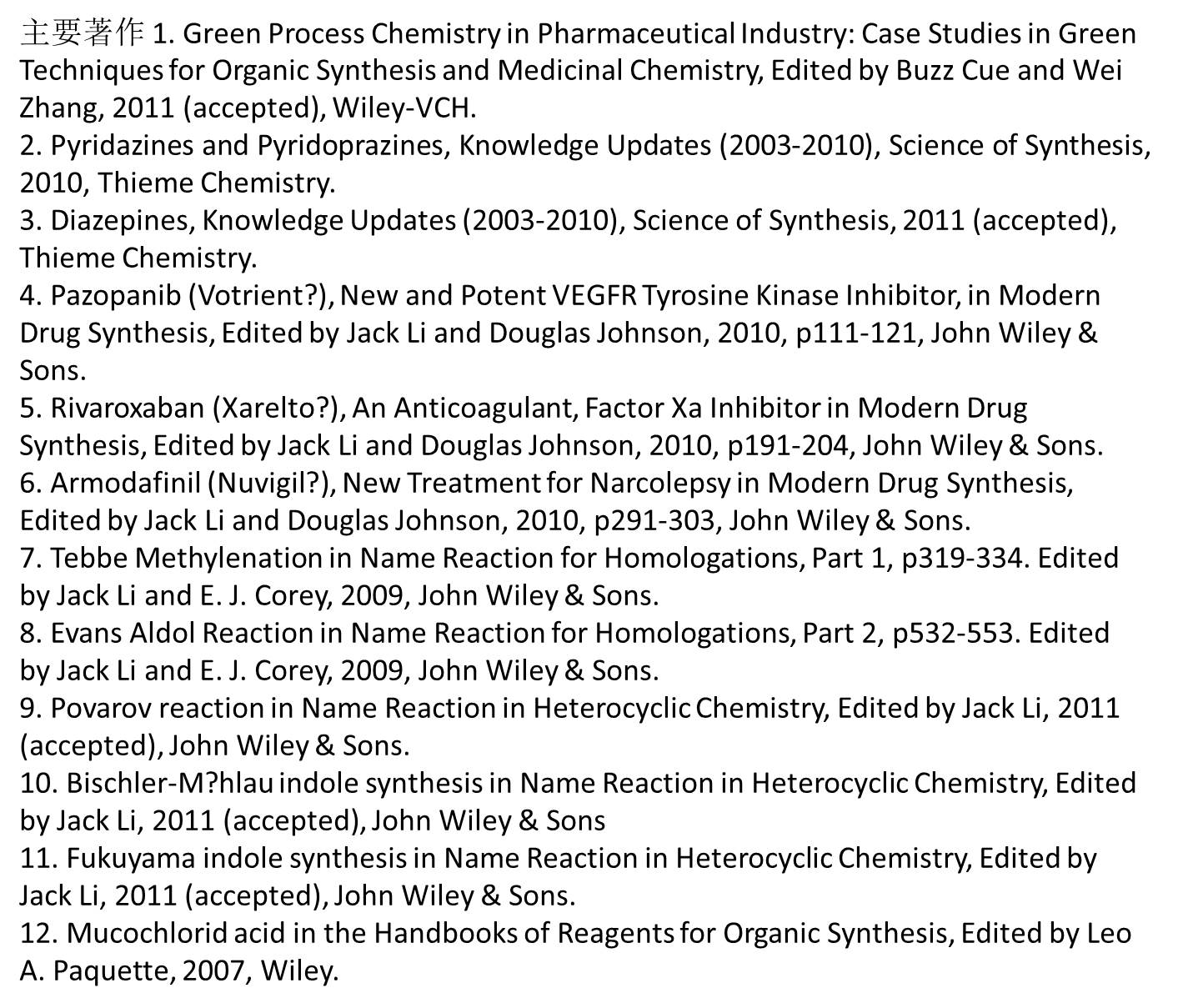 主要荣誉 2007获Pfizer(辉瑞制药)创新奖,以表彰在新药研发中利用绿色化学合成工艺。