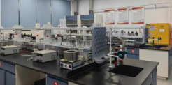物理化学实验室面积347平方米,物理化学实验是一门独立的基础课程,是化学、化工、环境、生物、能源、材料等各大类专业的基础课。该课程通过实验的手段,研究物质的物理化学性质以及这些物理化学性质与化学反应之间的关系。如热力学实验有燃烧热的测定;电化学实验有原电池电动势的测定和线性扫描伏安法实验。动力学实验有二级反应——乙酸乙酯皂化和过氧化氢的催化分解。