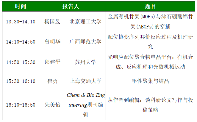 朱美怡 博士,Chem & Bio Engineering期刊编辑 题目:从作者到编辑:谈科研论文写作与投稿策略 |