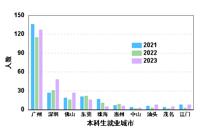 毕业生升学率和就业情况理想,考研升学率稳步上升,2024届本科生升学率创历史新高,达38.35%。部分学生考入北京大学、浙江大学、中国科学院过程工程研究所、中国科学院大学、中国科技大学、香港大学、哥伦比亚大学、爱丁堡大学、曼彻斯特大学等国内外知名学府以及科研院所继续深造。就业前景广阔,就业率一直保持在98%左右。90%以上毕业生在珠三角就业,分布于政府部门、各级学校、科研院所、知名企业等单位,为广东、粤港澳大湾区乃至全国的能源、化工、食品、材料、化妆品等行业输送了一批又一批高素质创新型人才。